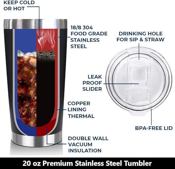 - We use double-wall insulation to help retain hot and cold liquid temperatures, which makes our tumbler also great for water, coffee, cola, beer, juice, tea, ice cream, cocktails and more.
