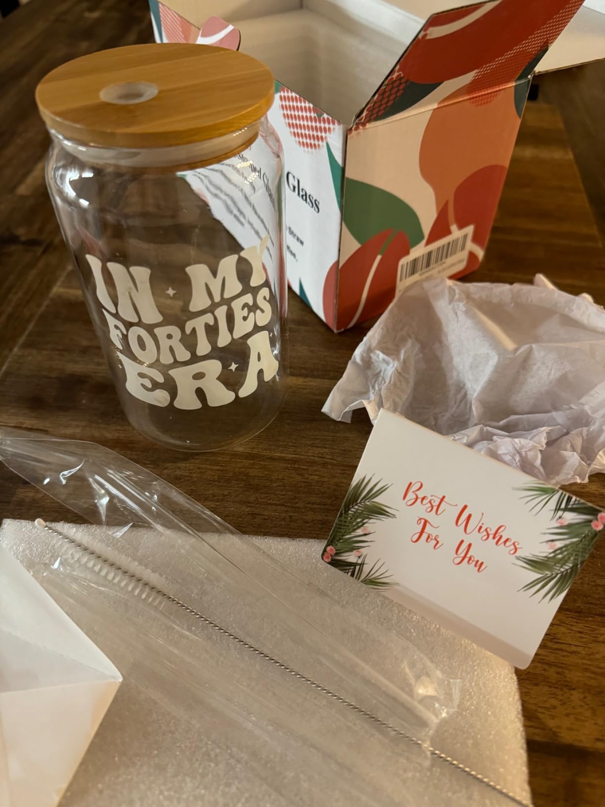 - This coffee glass with lid and straw features the text "In My Forties Era", such as stars and more, expressing sincere love and warm wishes for you and your loved ones; It creates a happy atmosphere for birthday party and serves as a meaningful gift to convey congratulations, blessings, and love for the receiver.