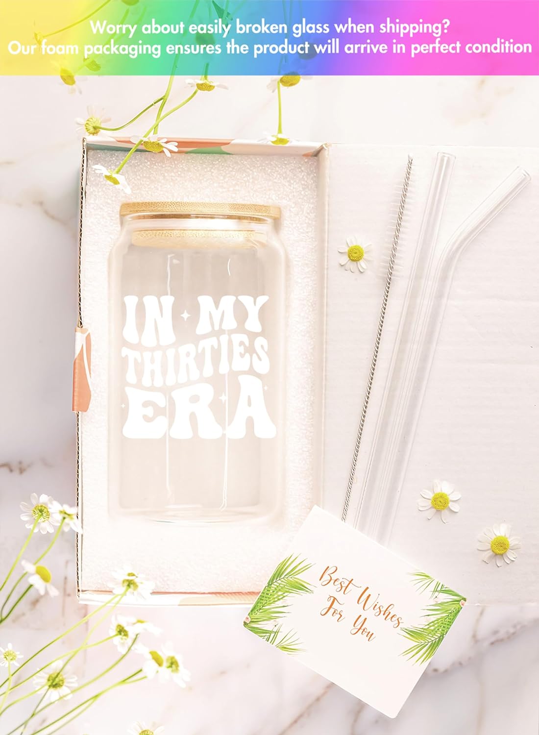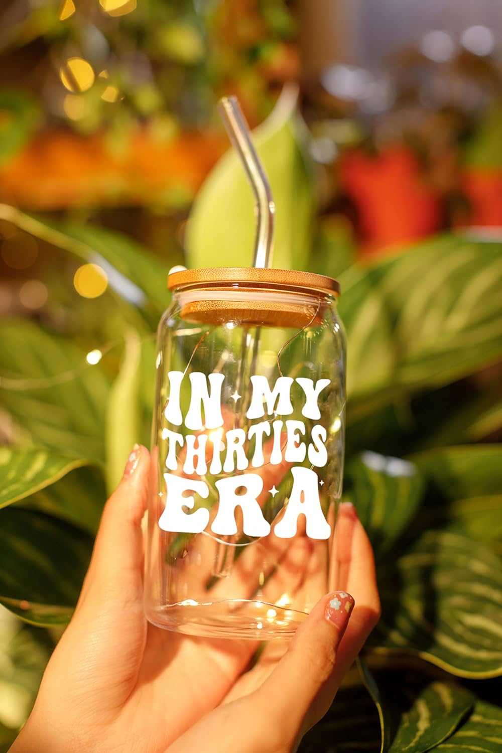 - This coffee glass with lid and straw features the text "In my thirties era", such as stars and more, expressing sincere love and warm wishes for you and your loved ones; It creates a happy atmosphere for birthday party and serves as a meaningful gift to convey congratulations, blessings, and love for the receiver
