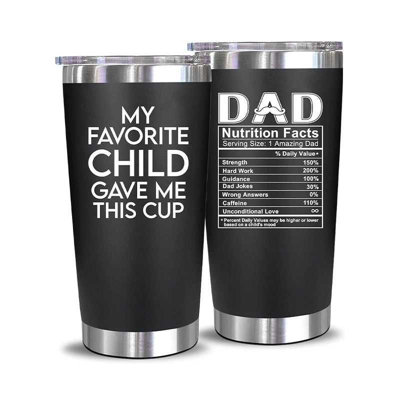 - Crafted with double-wall vacuum insulation, this 20 oz tumbler keeps drinks hot or cold for hours. Perfect for morning coffee, chilled beer, wine, tea, smoothies, or even milkshakes - making it a great everyday companion for any dad.
