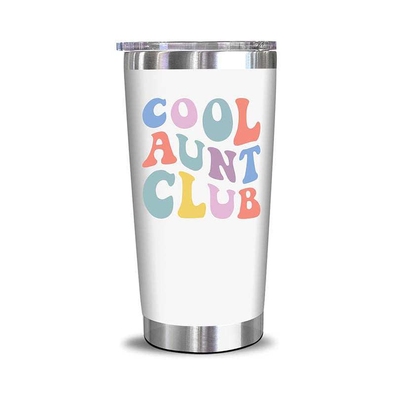 - Surprise your favorite auntie with this tumbler. It bears the endearing words “Cool Aunt Club,” printed in front with a vintage design that looks sleek and stylish!